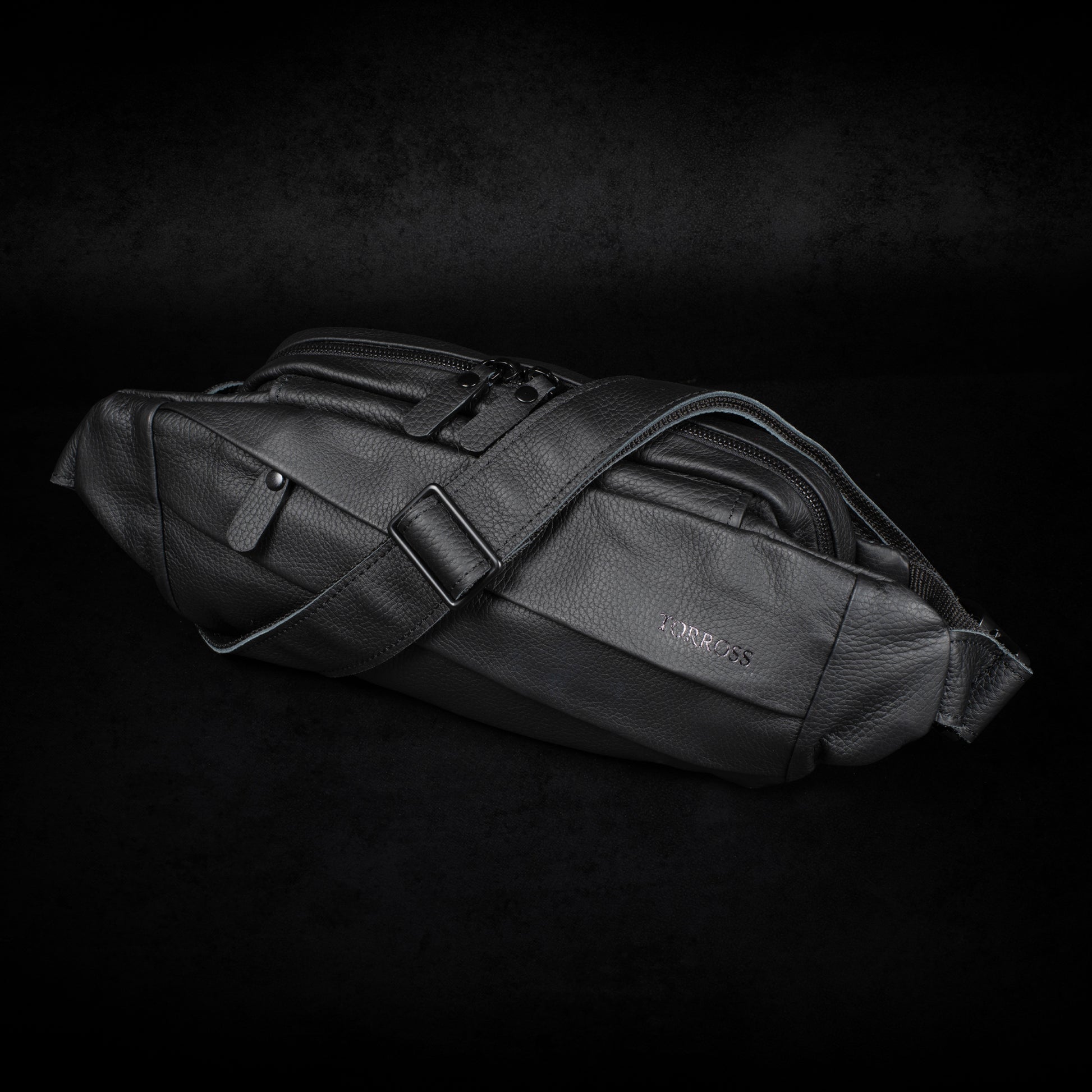 The bag has 2 zippered compartments. There is a small pocket in the main compartment. The strong waist belt (adjustable) has a massive buckle, thanks to which the bag can be easily fixed on the belt.
