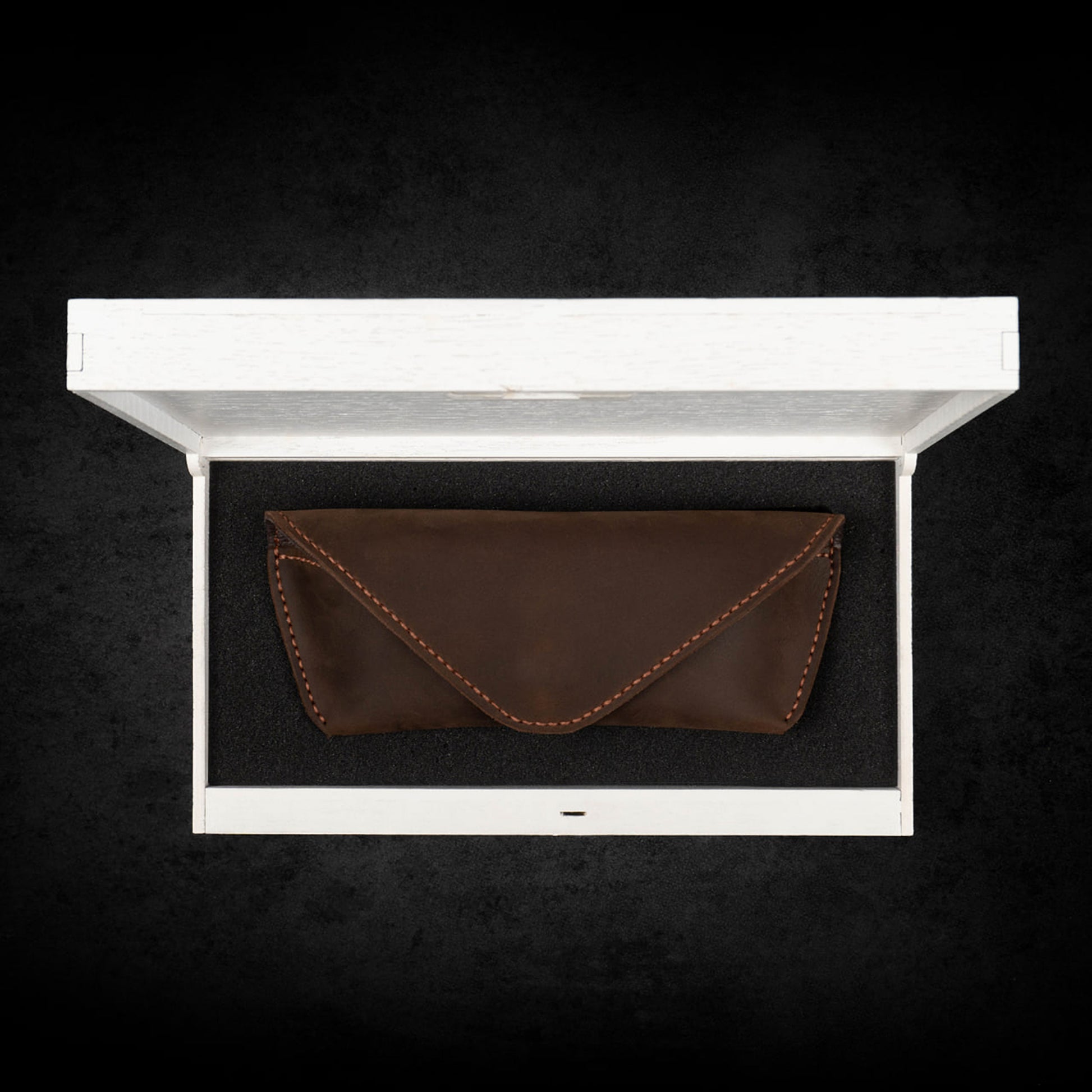 Creating this model, we wanted to combine quality, style and functionality. That's why we use only premium materials: full grain vegetable tanned cowhide with Crazy Horse finish, heavy-duty neodymium magnets and waxed thread, which is abrasion-resistant, flexible and moisture-proof.