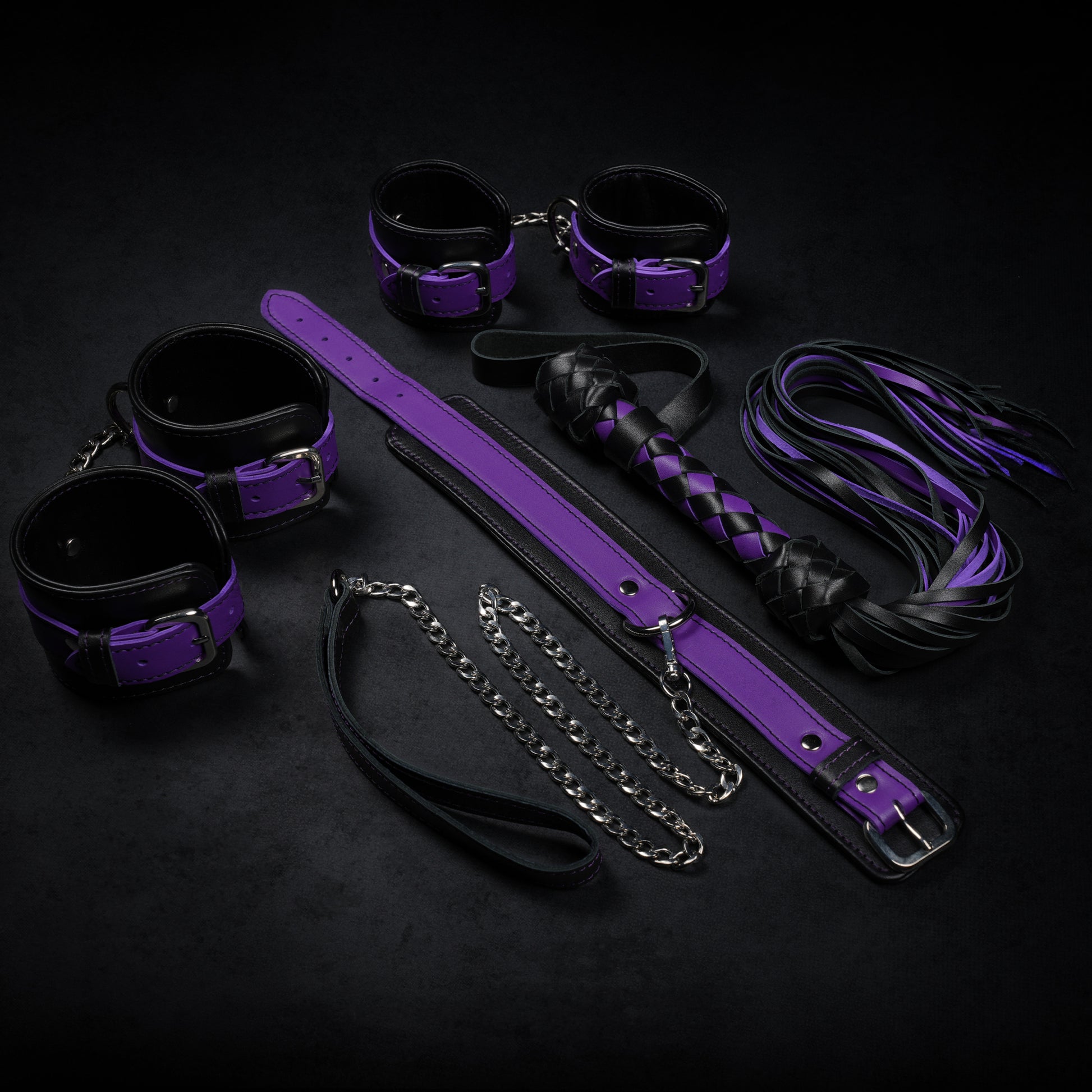 Designed for comfort, durability, and unmistakable style, each piece is handcrafted from premium leather to ensure strength, flexibility, and a distinctive look. Whether in play or as a statement of dominance and trust, the set combines practicality with sophistication — a pairing made for those who want more than just accessories, but a powerful connection.